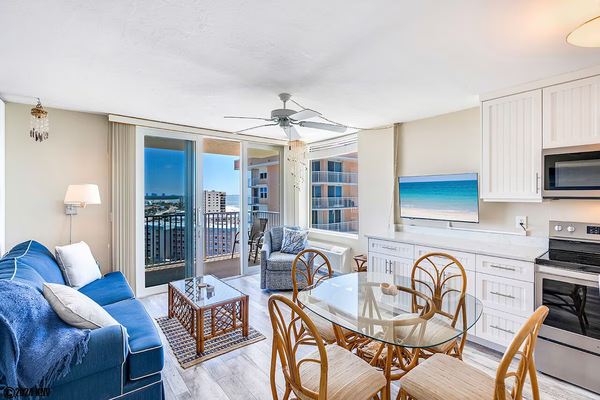 Ocean Jewels 3, 2BR Apartment, Sleeps 6, Close To The Fort Myers Beach Pier, Modern & Cozy Decor, Enjoy The Sunsets From Your Private Balcony.